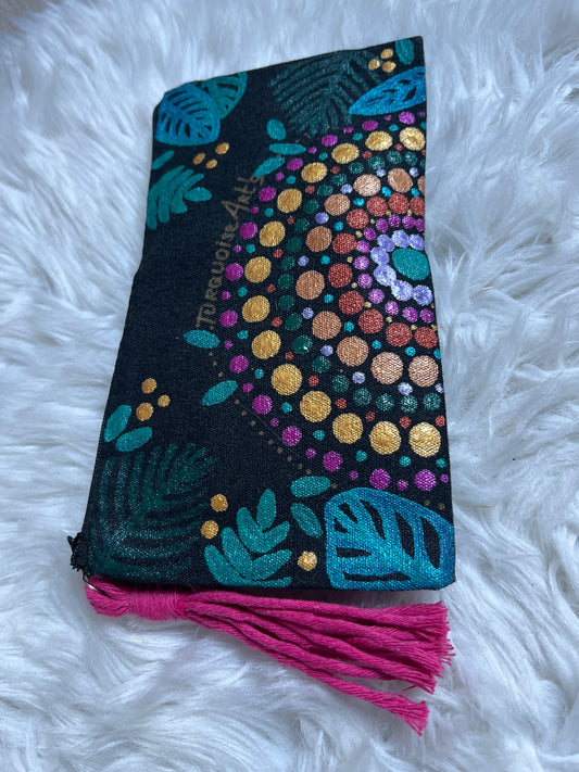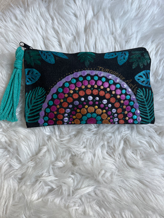 Trousse mandala ,pompon rose fuchsia,pièce unique