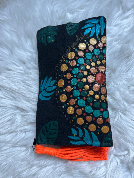 Trousse mandala pompon macramé orangé